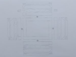 昔の木枠は、4つの辺を組んだ状態で裏面から見ると…ホゾの噛み